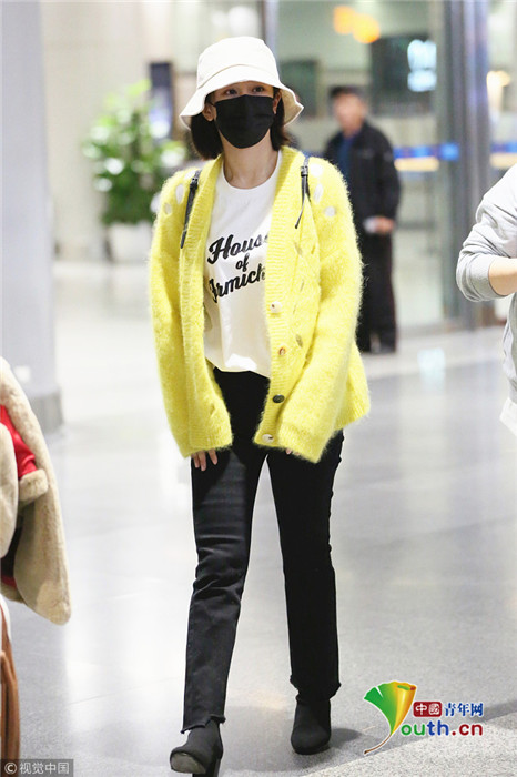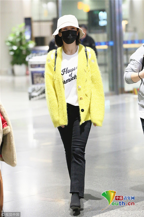 日前,楊紫現(xiàn)身長(zhǎng)沙黃花機(jī)場(chǎng),她頭戴漁夫帽的她口罩遮面,身著鮮黃針織衫相當(dāng)搶眼,一路獲粉絲跟拍。