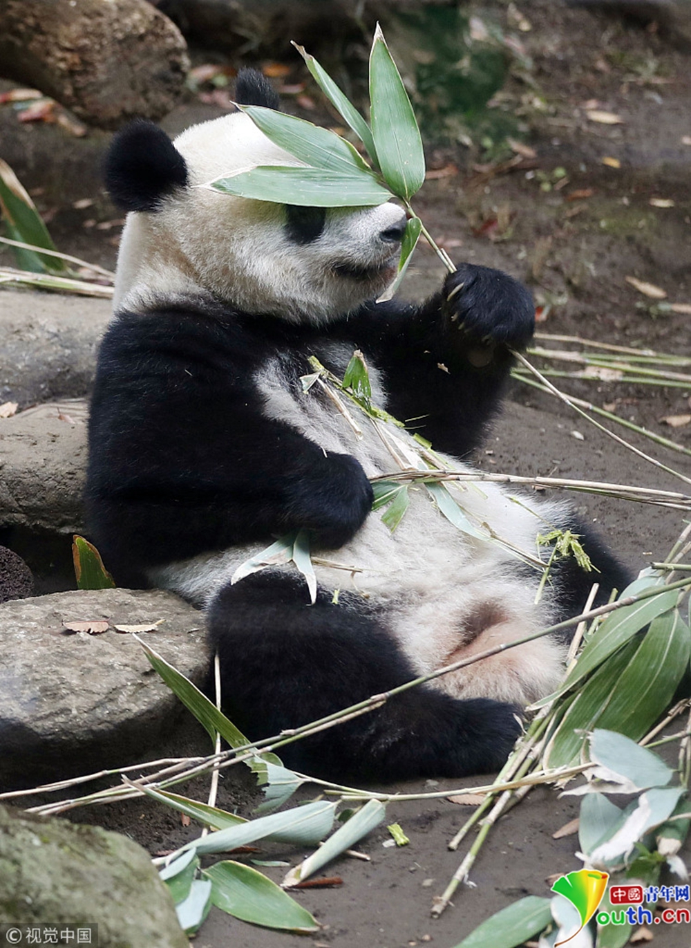 9月7日,大熊貓七仔在陜西省珍稀野生動(dòng)物搶救飼養(yǎng)研究中心內(nèi)吃竹筍。