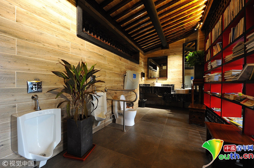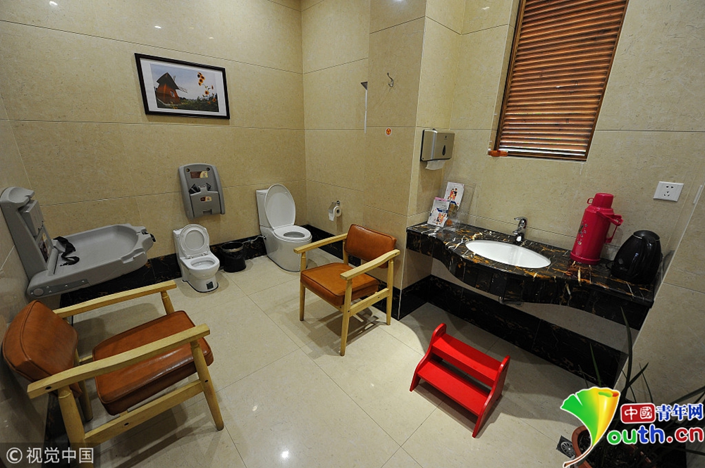 還設(shè)有第三衛(wèi)生間,是專為殘疾人、以及帶著小孩的父母?jìng)兲峁┑囊粋€(gè)私密空間。免費(fèi)上這樣超豪華、且復(fù)古又特有文藝范兒的公廁,能讓人感受到一種如“家”般的舒適,像是進(jìn)了五星級(jí)酒店似的。