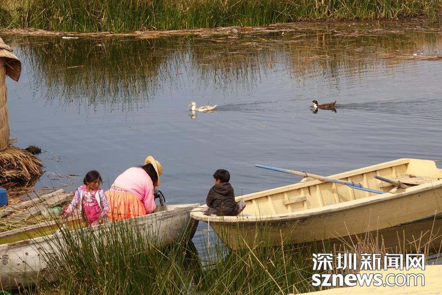 烏魯人和其他湖邊居民還用香蒲制作他們有名的巴莎筏(balsa)──由成捆的乾蘆葦綁扎而成的小筏,類(lèi)似古埃及墓碑上所畫(huà)的新月形莎草小船。李仁奇 攝