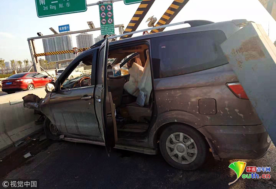 快速路司機(jī)開車“走神” 眨眼撞塌限 ...