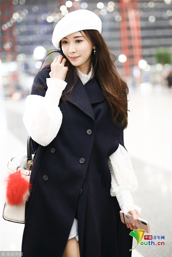 11月19日,北京,林志玲現(xiàn)身機(jī)場(chǎng),林志玲穿黑色大衣配貝雷帽溫暖俏皮,揮手賣萌露修長(zhǎng)美腿女神氣質(zhì)爆棚。