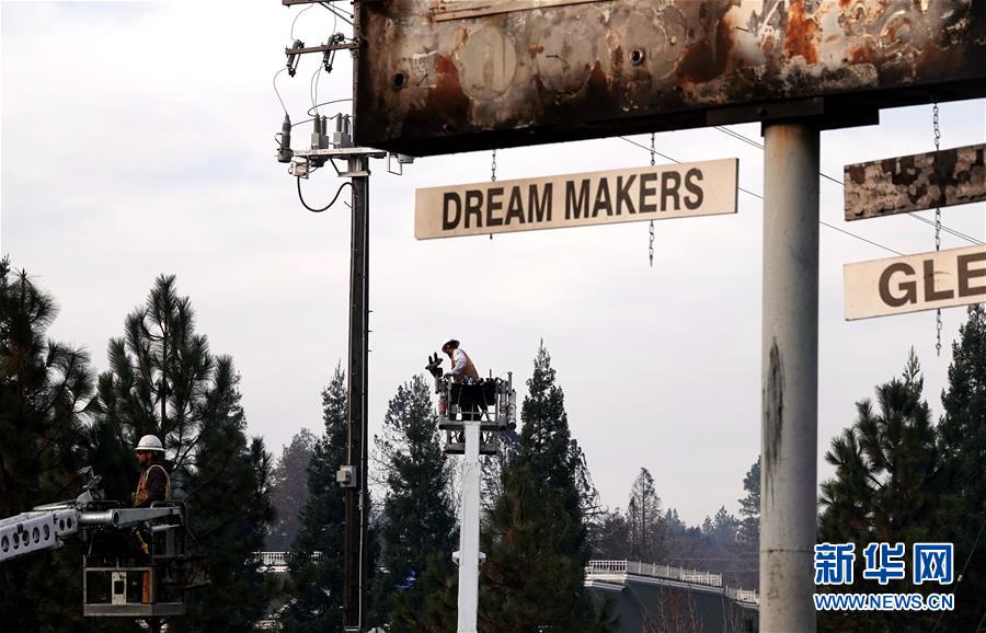 11月20日,在美國加利福尼亞州比尤特縣天堂鎮(zhèn),救援人員在災(zāi)區(qū)工作。