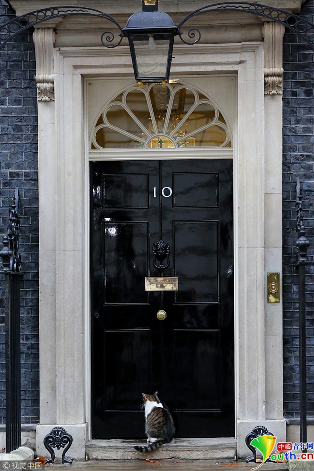 被關(guān)在門外的拉里起先“安靜且耐心地”蹲坐在唐寧街10號的黑色大門前。