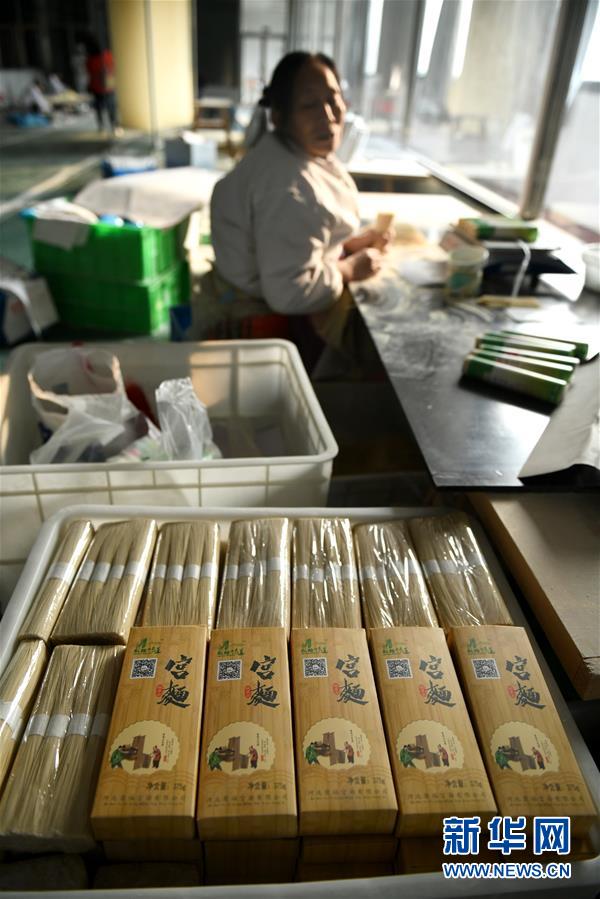 11月23日,在石家莊市藁城區(qū)耿家莊村某宮面生產(chǎn)廠,工人在分裝宮面。