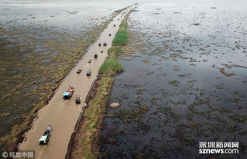 6月20日,鄱陽湖江西省鄱陽縣水域,漁船下湖捕撈作業(yè)。為期3個月的中國最大淡水湖鄱陽湖春季禁漁期于當日12時結(jié)束。當日,第二屆鄱陽湖國家濕地公園開漁節(jié)在此間舉行,吸引各地游客慕名前來。中新社記者 姜濤 攝