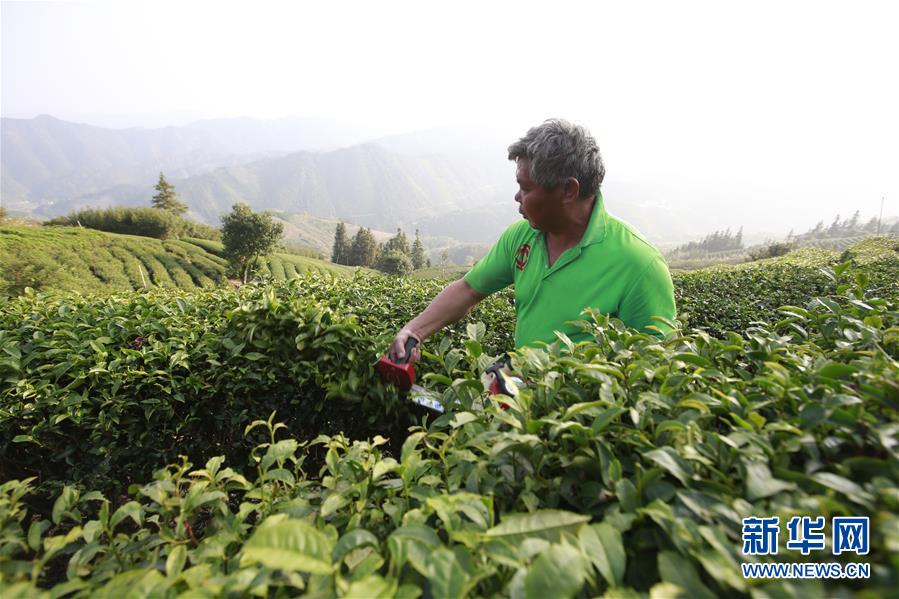 11月22日,在廣西柳州三江侗族自治縣八江鎮(zhèn)布央村,村民莫景凡在修剪茶樹。