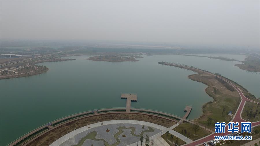 這是11月15日無(wú)人機(jī)拍攝的河南蘭考縣新開(kāi)挖的湖泊。新華社記者馮大鵬攝