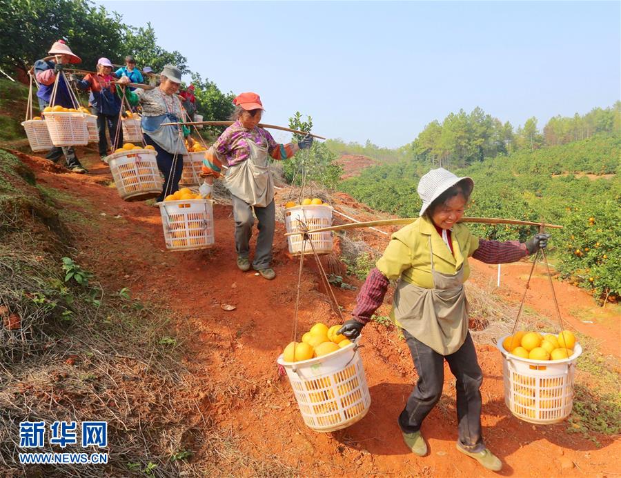 近日,江西省贛州市于都縣近15萬畝臍橙進入豐收采摘期,當?shù)剞r(nóng)戶抓住晴好天氣采摘,果園呈現(xiàn)一派繁忙景象。 新華社記者 胡晨歡攝
