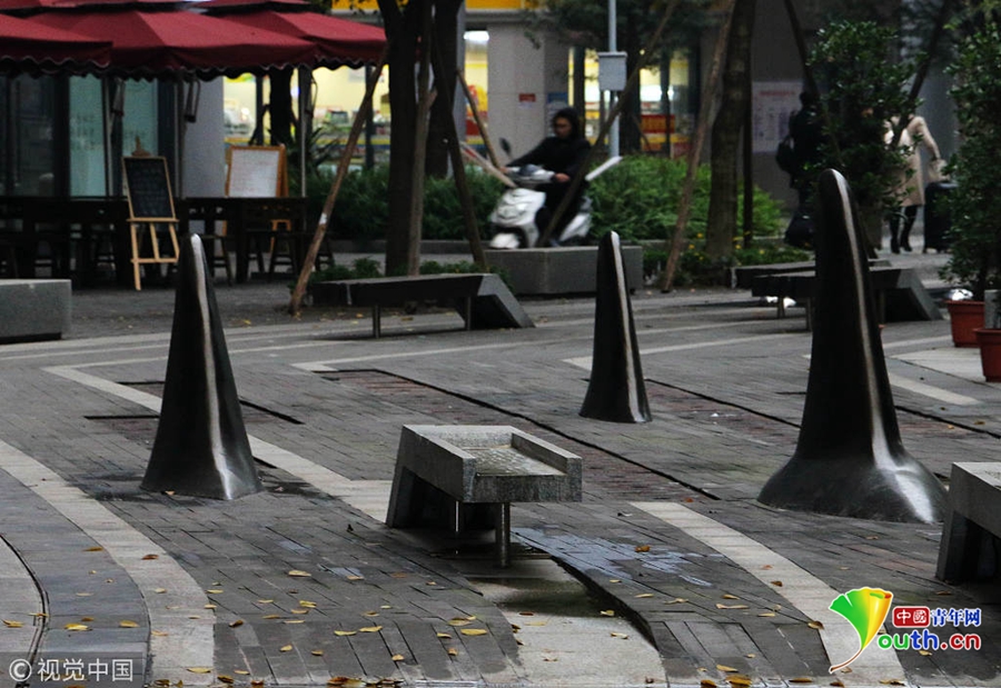 對于這種設(shè)計,不少市民覺得比較精巧的,遠遠地望去,就好像在海面上露出魚鰭的一群鯊魚,不僅可以防止被車輛占道,而且還有點裝飾的效果。