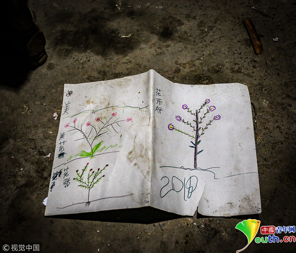 兄妹幾人只能歪歪扭扭寫出自己的名字和簡單漢字。17歲的張梅花還喜歡在紙上畫畫。