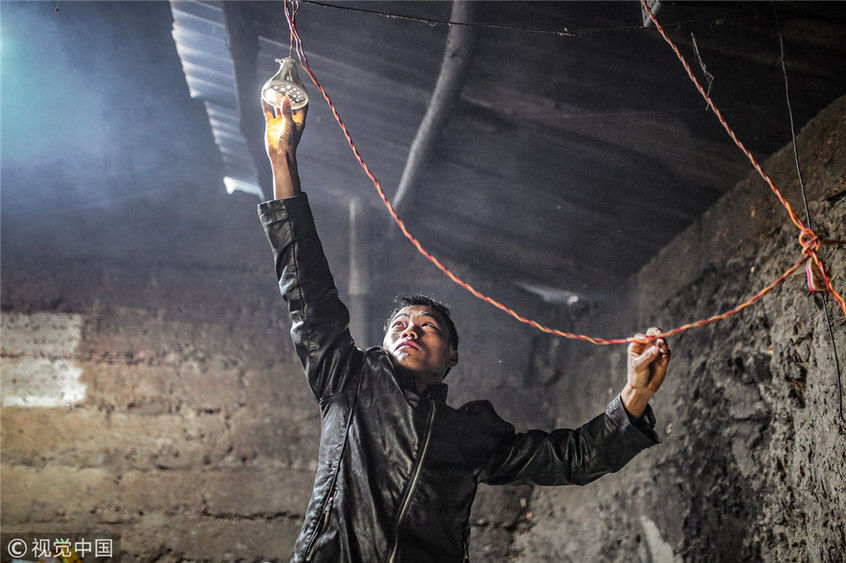 2018年11月,云南昆明。家里有個太陽能的蓄電池,但燈光微弱。