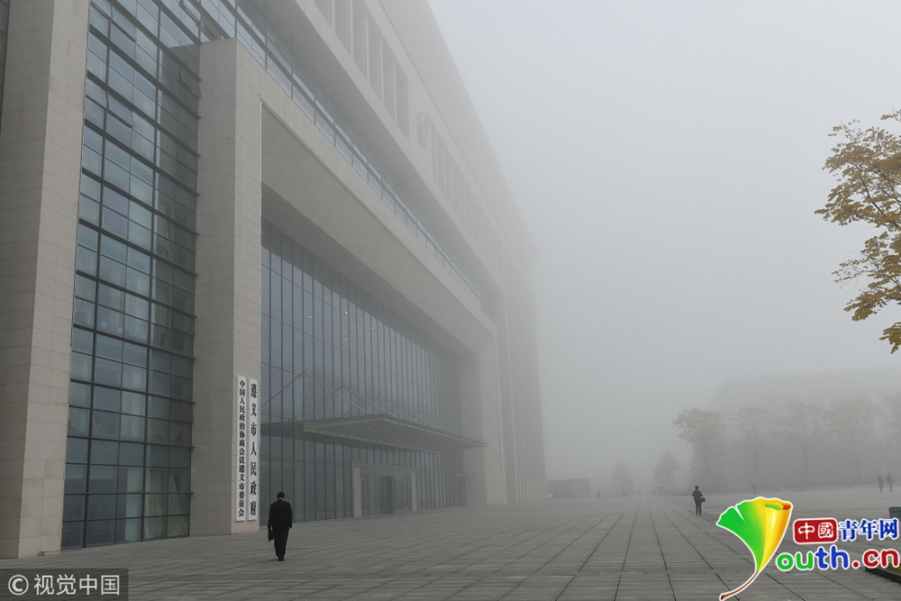 2018年11月26日,貴州省遵義市人民政府辦公大樓被大霧籠罩。