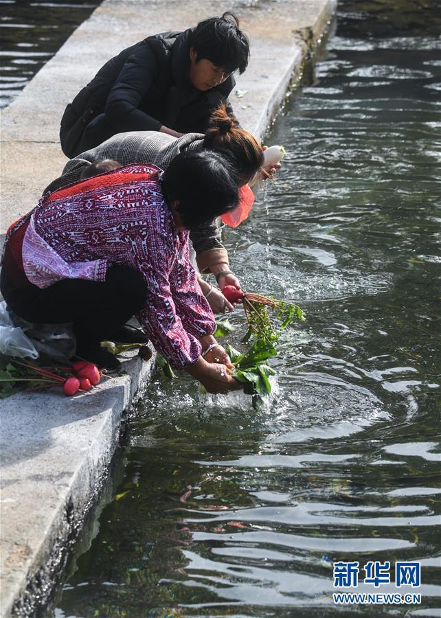 11月28日,月明村的村民在長豐澗溪水邊洗菜淘米。近年來通過實施河長制和水環(huán)境整治,長興縣夾浦鎮(zhèn)月明村對長豐澗進行了清淤,對河兩岸綠化進行了補植,修筑堰壩、蓄水引魚,兩岸種植花草,開辟河灘公園,實現(xiàn)了長豐澗景美、岸綠、水清、河暢的目標(biāo)。 新華社記者 徐昱 攝