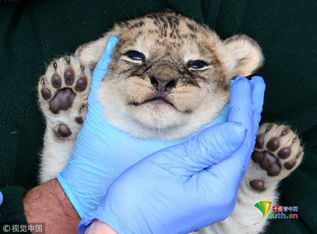 《我快要窒息了。?!?016年7月28日訊,英國斯特靈,布萊爾德拉蒙德野生動(dòng)物園四只三周大的幼獅接受首次健康檢查。