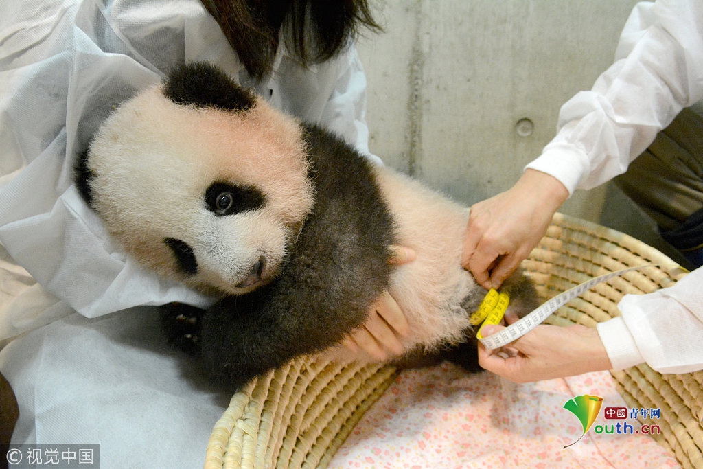 當?shù)貢r間2017年10月10日,日本東京,旅日大熊貓“香香”在東京上野野生動物園進行健康檢查。