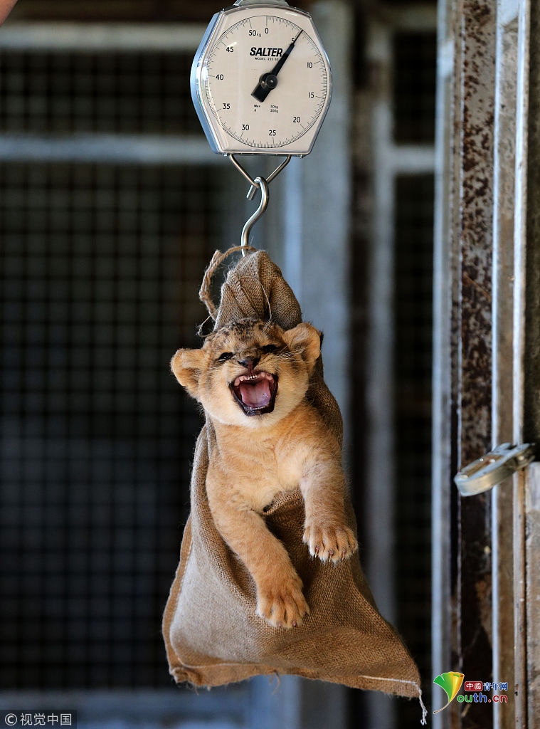 萌吐奶!動物體檢現場爆笑可愛 獅子被提起來稱重