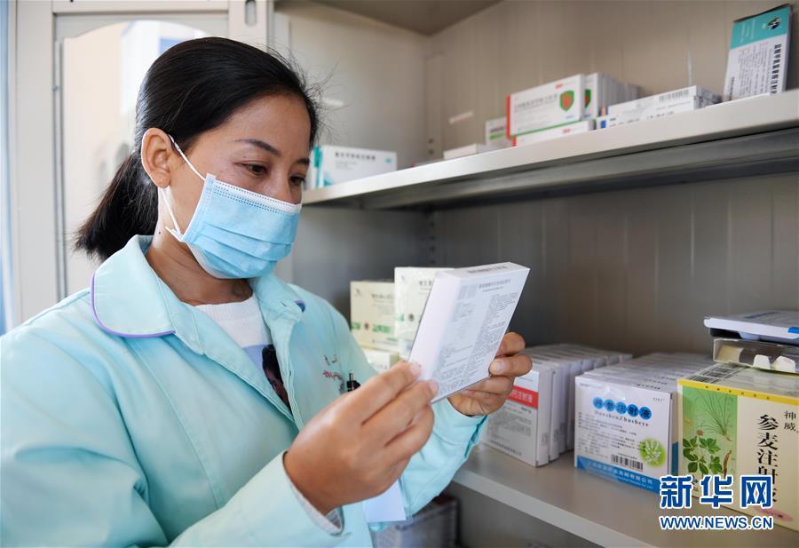 11月28日,張惠仙在巖因村衛(wèi)生室準備藥品。 新華社記者 楊宗友 攝