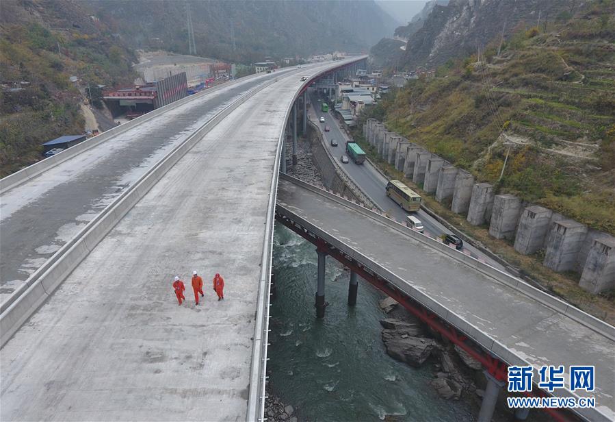 這是11月3日無人機拍攝的克枯大橋。 當(dāng)日,位于四川省阿壩藏族羌族自治州的汶(川)馬(爾康)高速的控制性工程克枯大橋合龍。 新華社記者 劉坤 攝
