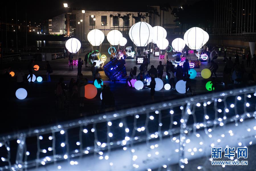 12月2日,人們?cè)诎拈T南灣湖水上活動(dòng)中心欣賞光影節(jié)裝置。