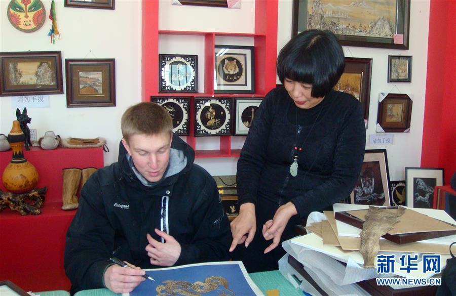 張琳在位于哈爾濱的工作室指導(dǎo)前來(lái)參觀學(xué)習(xí)的外國(guó)學(xué)生制作魚(yú)皮畫(huà)(2011年3月20日攝)。國(guó)家級(jí)非物質(zhì)文化遺產(chǎn)赫哲族魚(yú)皮制作技藝是我國(guó)赫哲族傳統(tǒng)手工藝術(shù)。作為這項(xiàng)技藝的黑龍江省級(jí)傳承人,十余年來(lái),張琳一直從事魚(yú)皮畫(huà)的研究和創(chuàng)作,并通過(guò)做推廣、開(kāi)講座、辦活動(dòng),讓更多年輕人了解并喜歡上這一傳統(tǒng)手工藝,將這項(xiàng)瀕臨失傳的藝術(shù)更好地傳承下去。新華社發(fā)