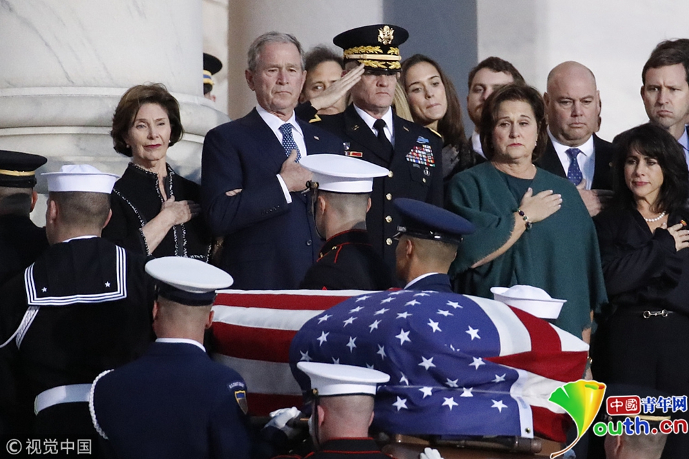 美國第41任總統(tǒng)喬治·赫伯特·沃克·布什(老布什)的靈柩從他的家鄉(xiāng)休斯頓運抵首都華盛頓市郊,他的遺體將從當天晚上開始放于國會圓形大廳,供民眾瞻仰。