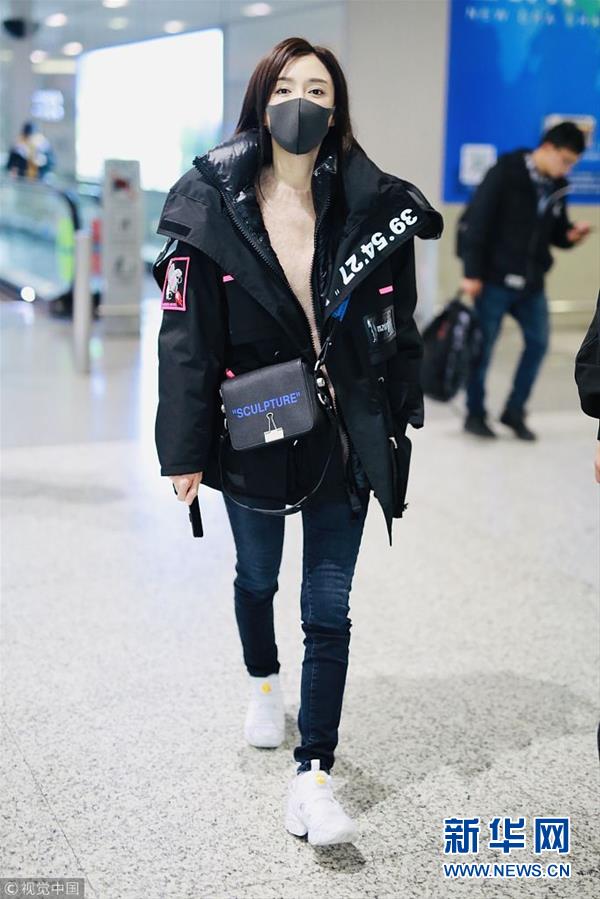 2018年12月3日,上海,秦嵐亮相機(jī)場。潮味棉服亮相機(jī)場變酷女孩,口罩遮面露甜笑心情靚。(圖片來源:視覺中國)