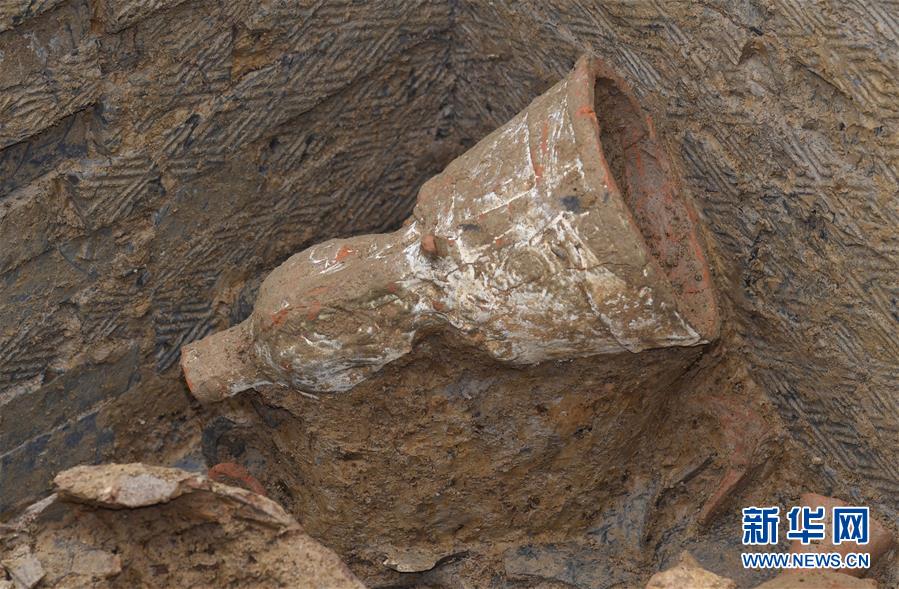 這是發(fā)掘的隨葬“搖錢樹”底座(11月15日攝)。