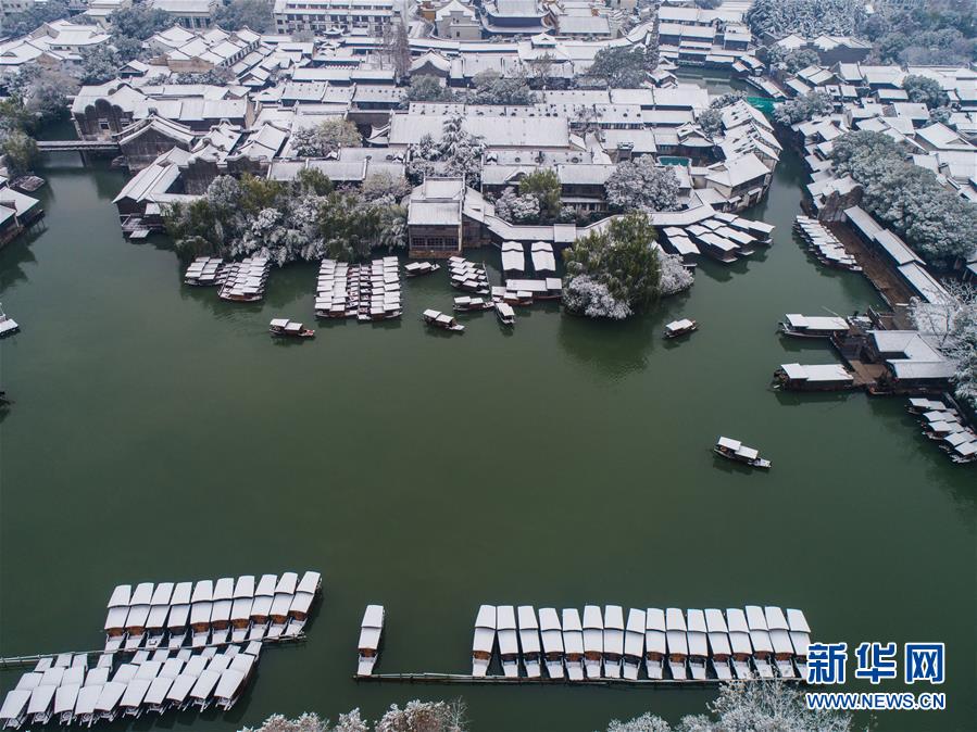 12月9日,空中俯瞰被白雪覆蓋的烏鎮(zhèn)景區(qū)(無(wú)人機(jī)拍攝)。 受冷空氣影響,浙江省桐鄉(xiāng)市迎來(lái)大范圍降雪,千年古鎮(zhèn)烏鎮(zhèn)被厚厚的白雪覆蓋。小橋流水、白墻黑瓦的江南水鄉(xiāng)古鎮(zhèn),呈現(xiàn)出冬日雪鄉(xiāng)的獨(dú)特韻味,吸引各地游客前來(lái)觀賞。 新華社記者 徐昱 攝