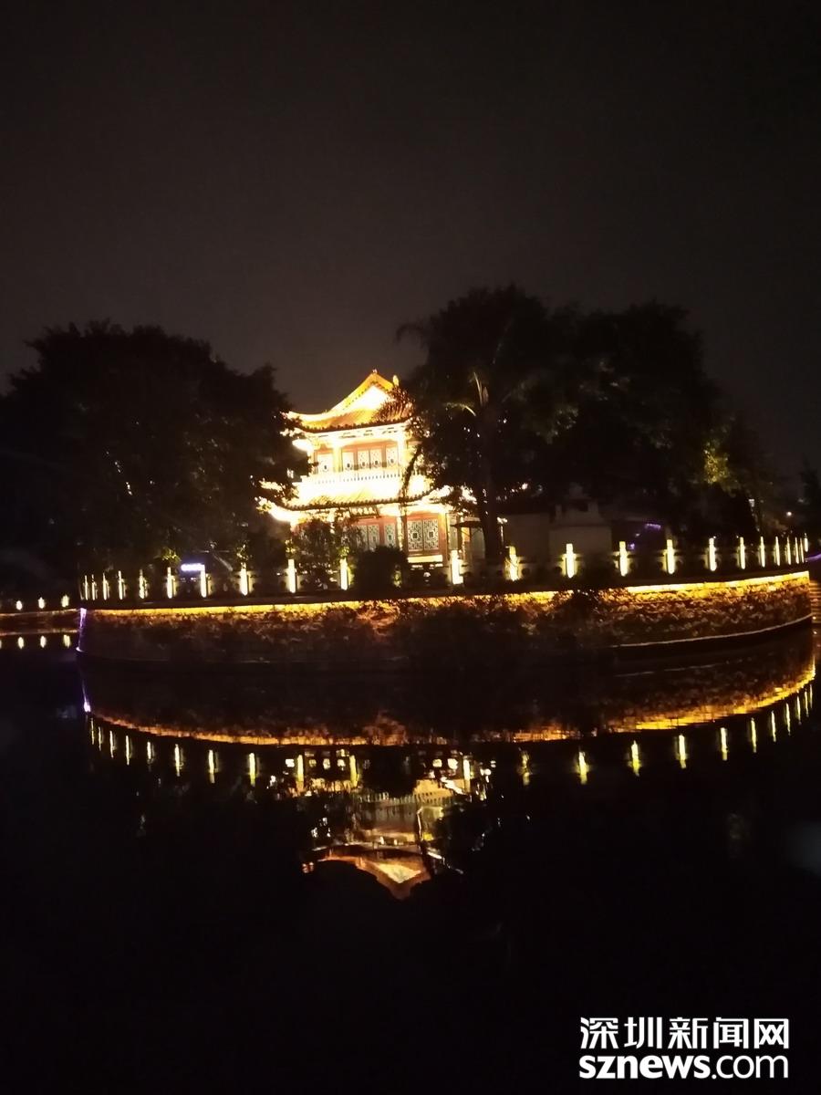 百里塘河穿市而過 ,燈光水光,相映成趣。 吳超攝