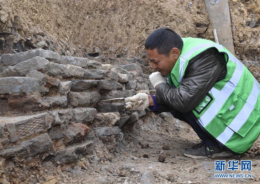 11月15日,工人正在清理出土的磚塊。