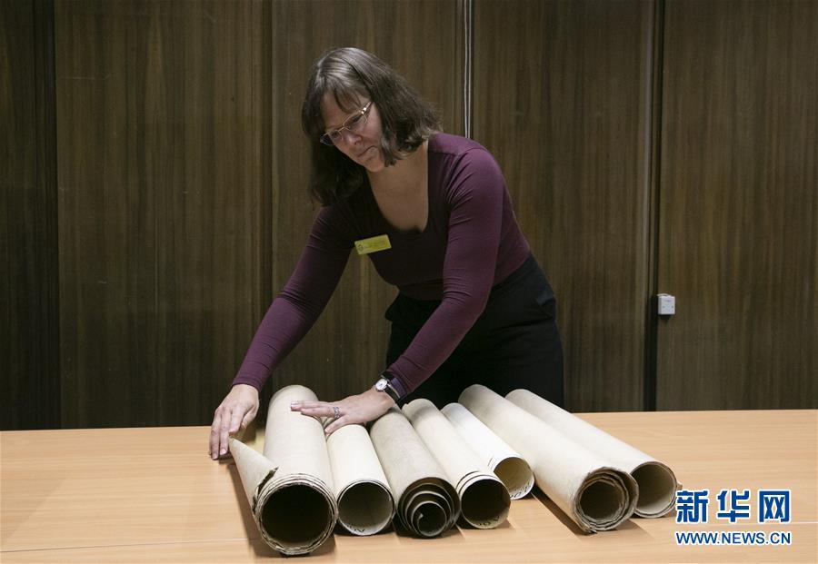 11月2日,在英國紐卡斯爾的泰恩—威爾檔案館,檔案管理員瑞秋·吉爾介紹致遠艦設(shè)計圖紙。 新華社記者日前在紐卡斯爾泰恩—威爾檔案館查找北洋海軍史料時發(fā)現(xiàn)一套七張、檔案名為“中國巡洋艦舵機設(shè)計圖”的原始圖紙。塵封百年,甲午海戰(zhàn)中抗擊日艦后沉沒的清北洋海軍致遠艦部分原廠設(shè)計圖紙在其建造地——英國紐卡斯爾市的一家檔案館首次被發(fā)現(xiàn),為打撈那段悲壯的歷史提供了重要參考。 新華社記者 韓巖 攝