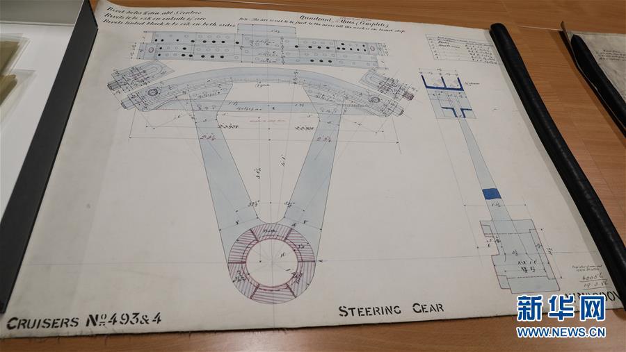 這是11月2日,在英國紐卡斯爾拍攝的橫跨在泰恩河上的紅白兩色的鋼鐵旋轉(zhuǎn)橋泰恩橋。當年,致遠艦就是從這里駛向大海,開啟東方征程。 新華社記者日前在紐卡斯爾泰恩—威爾檔案館查找北洋海軍史料時發(fā)現(xiàn)一套七張、檔案名為“中國巡洋艦舵機設(shè)計圖”的原始圖紙。塵封百年,甲午海戰(zhàn)中抗擊日艦后沉沒的清北洋海軍致遠艦部分原廠設(shè)計圖紙在其建造地——英國紐卡斯爾市的一家檔案館首次被發(fā)現(xiàn),為打撈那段悲壯的歷史提供了重要參考。 新華社記者 韓巖 攝