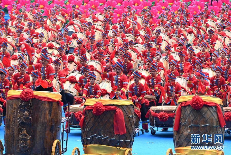 12月10日,廣西壯族自治區(qū)成立60周年慶祝大會在廣西體育中心隆重舉行。這是慶祝大會上的群眾文藝表演。 新華社記者 周華 攝