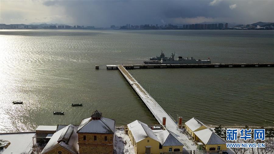 這是12月8日無人機(jī)拍攝的威海劉公島鐵碼頭。這里曾是北洋海軍的母港。 新華社記者郭緒雷攝