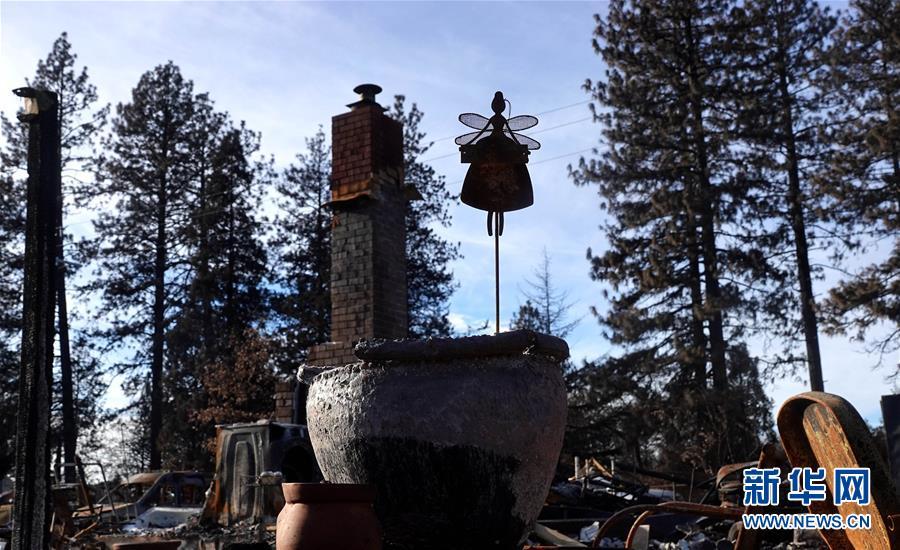 這是12月7日在美國加利福尼亞州比尤特縣天堂鎮(zhèn)拍攝的山火廢墟。 新華社記者吳曉凌攝