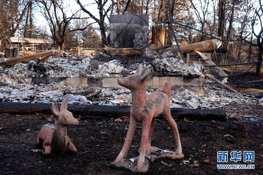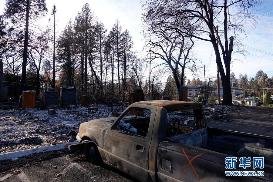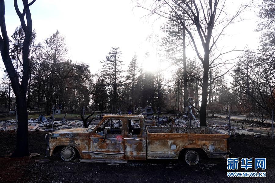 這是12月7日在美國加利福尼亞州比尤特縣天堂鎮(zhèn)拍攝的山火廢墟。