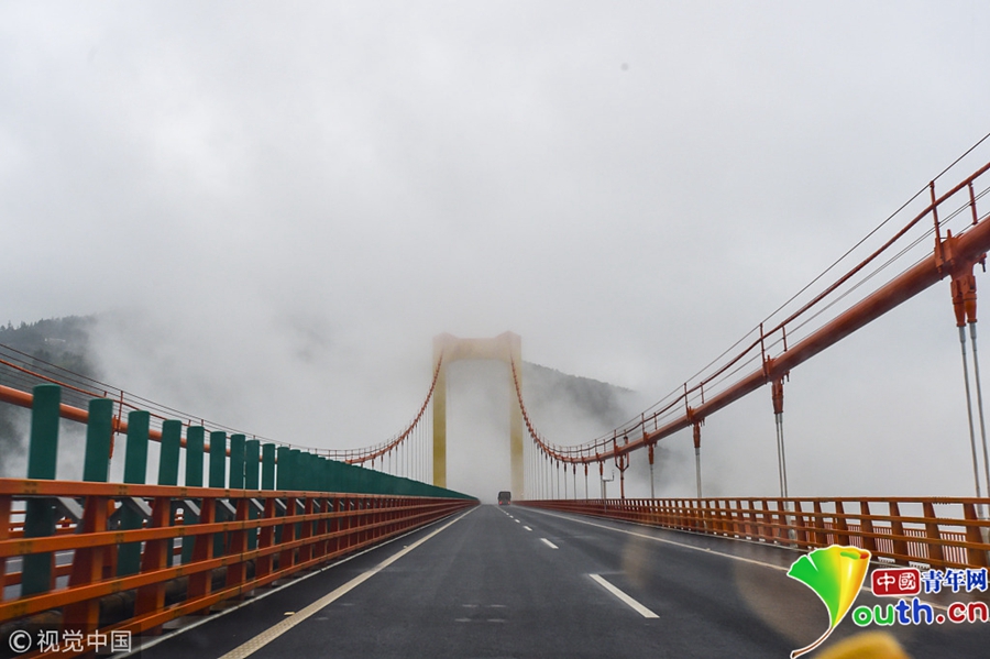 從貴州往云南方向前行十多公里,進入云南界普立大橋一頭,有關(guān)部門在高速公路旁開辟一塊平地,專門設(shè)置觀光臺,讓游客有機會停車駐足觀賞變幻多端的云海。圖片來源:視覺中國