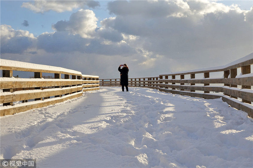 2018年12月7日,山東煙臺(tái),雪后的海濱景色。