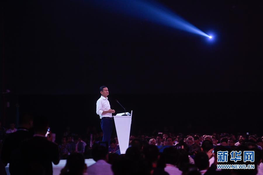 馬云在2018杭州·云棲大會主論壇上演講(9月19日攝)。 新華社記者黃宗治攝