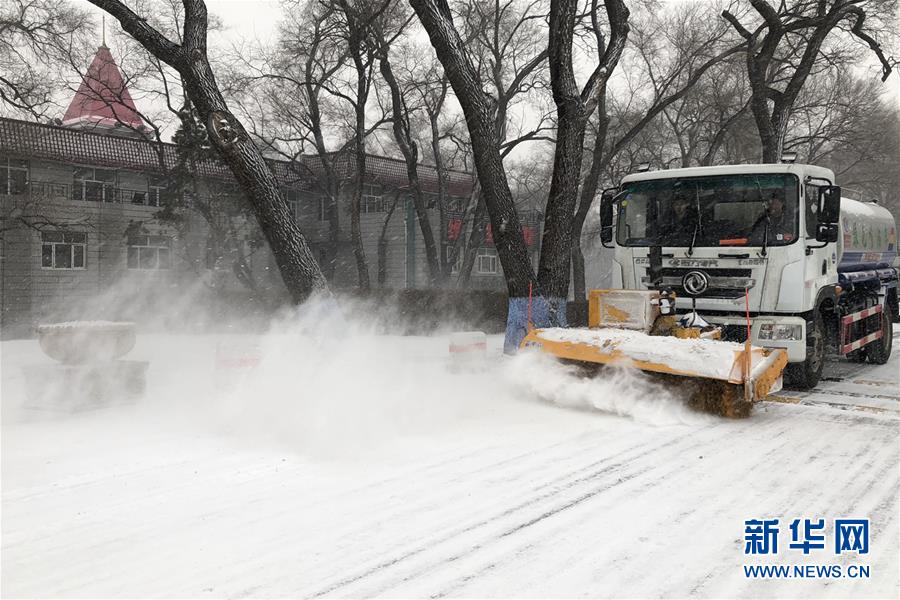 12月21日,清雪車輛在哈爾濱城區(qū)一條道路進(jìn)行清雪作業(yè)。當(dāng)日,“冰城”哈爾濱迎來降雪天氣,整個(gè)城市變得銀裝素裹。新華社記者曹霽陽攝