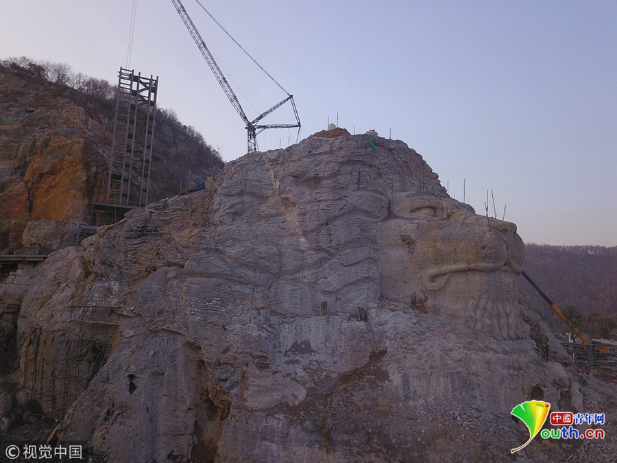 2018年12月23日,南京浦口區(qū)老山風(fēng)景區(qū)三河采石場(chǎng)宕口,利用宕口廢棄工地進(jìn)行生態(tài)修復(fù)的蜂巢酒店主體完工。經(jīng)過(guò)100名雕刻工人近半年的施工,酒店兩側(cè)被破壞的山體變成兩只高30多米的巨型山體雕塑石獅,栩栩如生,場(chǎng)面極其震撼。