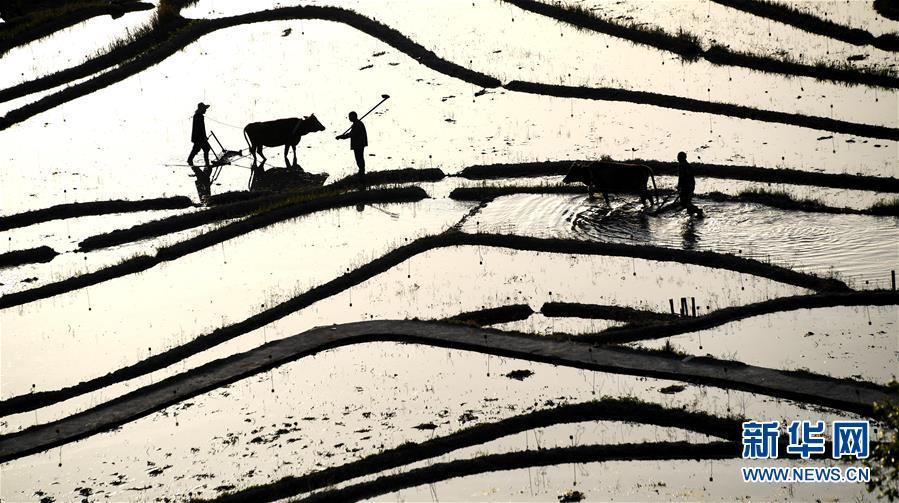 4月10日清晨,湖北省蘄春縣霧云山村的農(nóng)民在梯田勞作。 在即將過(guò)去的2018年,各地?cái)z影師用鏡頭記錄下四季中國(guó)。大江南北,一幅幅色彩斑斕的美麗畫(huà)卷徐徐展開(kāi)。 新華社記者 程敏 攝