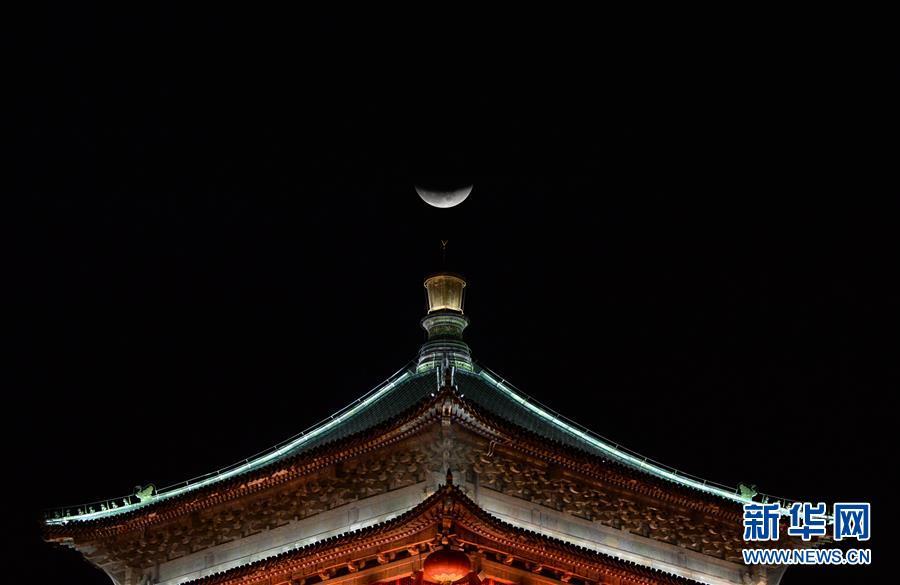這是1月31日在陜西省西安市鐘樓拍攝的月亮。 在即將過(guò)去的2018年,各地?cái)z影師用鏡頭記錄下四季中國(guó)。大江南北,一幅幅色彩斑斕的美麗畫(huà)卷徐徐展開(kāi)。 新華社記者 李一博 攝