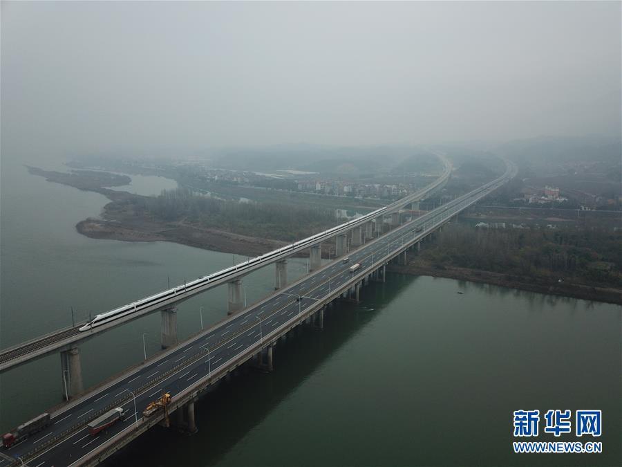 杭黃高鐵正式通車 12月25日,D9551次首發(fā)列車駛過富春江特大橋(無人機拍攝)。 新華社記者 邢廣利 攝