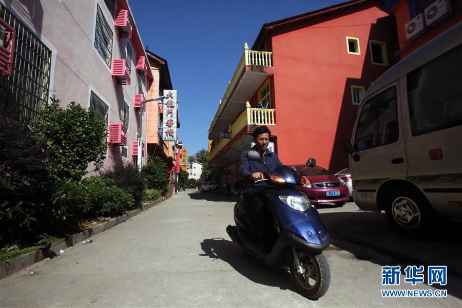 舒港發(fā)騎著電動車行進在村子里(10月28日攝)。