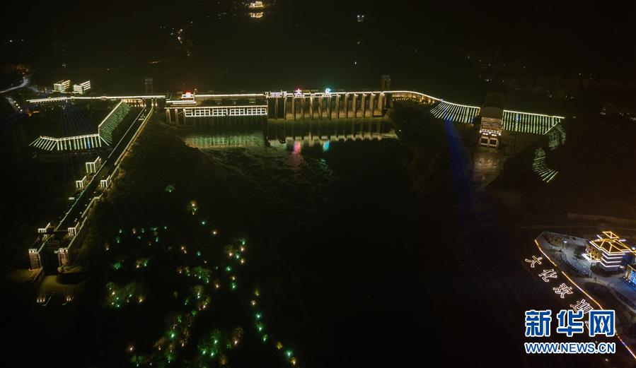 這是位于廣西大化縣境內(nèi)的大化水電站夜景(10月21日無人機拍攝)。廣西紅水河是我國十二大水電基地之一,目前建有天生橋一級、天生橋二級、平班、龍灘、巖灘、大化、百龍灘、樂灘、橋鞏、大藤峽10個大型梯級電站及下游西江上的長洲水利樞紐。這些水電站既是我國“西電東送”的主力軍之一,又對珠三角地區(qū)遠(yuǎn)離洪災(zāi)侵襲有著重要的調(diào)節(jié)功能。近期,新華社記者用無人機從空中俯瞰這些水電基地群,呈現(xiàn)它們的別樣之美。新華社記者 張愛林 攝
