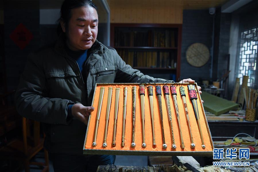 12月29日,在鄣吳鎮(zhèn)的老街上一家制扇工作室內(nèi),制扇藝人展示他制作的不同類型的扇骨。 當日,“中國竹扇之鄉(xiāng)”——浙江省安吉縣鄣吳鎮(zhèn)舉辦傳統(tǒng)文化迎新年活動。舉辦包括扇文化博覽會、扇面藝術(shù)展、制扇工藝展示及金石、拓印文化展示等活動,弘揚中華優(yōu)秀傳統(tǒng)文化。 自上世紀七十年代以來,鄣吳鎮(zhèn)開始發(fā)展制扇產(chǎn)業(yè),現(xiàn)在該鎮(zhèn)有各類制扇企業(yè)80余家,制扇行業(yè)從業(yè)人員2000多人,年產(chǎn)值達2億多元。 新華社記者 徐昱攝
