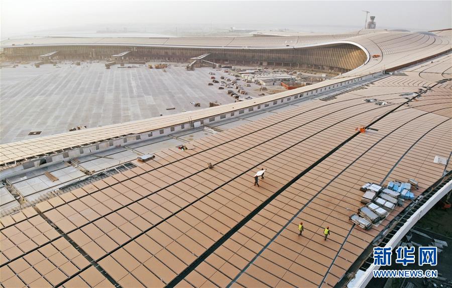 2019年1月1日,工人在北京大興國際機場工地冒著嚴寒施工(無人機拍攝)。 當日是新年第一天,眾多勞動者忙碌在工作崗位上。 新華社記者 才揚 攝