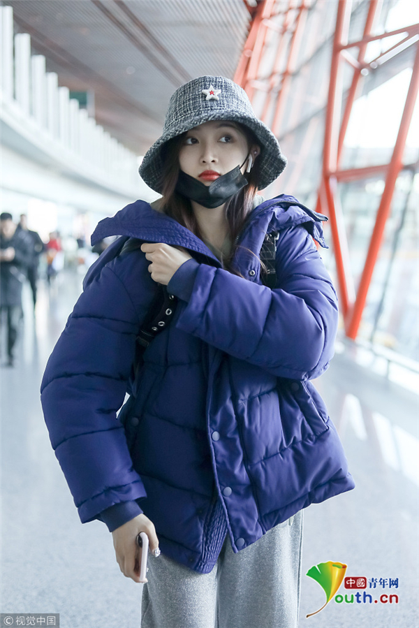 1月1日,北京,吳宣儀現(xiàn)身機場。外帶著漁夫帽的她嘟嘴顯可愛,裹著厚重羽絨服認(rèn)真過冬超保暖。